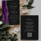 Le bord gauche de cette élégante faire-part de mariage moderne est orné d'une bordure d'aquarelle violette ornée d'une parties scintillant en faux argent. Le texte personnalisable combine écriture gris argenté pâle, copperplate et polices italiques sur un arrière - plan noir foncé. L'envers offre de l'espace pour les détails du mariage sur un arrière - plan sombre solide, ainsi qu'un code QR que les invités peuvent scanner pour visiter votre site Web et RSVP, ce qui permet d'économiser le coût d'impression et d'envoi de cartes RSVP séparées.