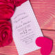 Invitation violette aux coeurs blancs pour une Saint Valentin ou un mariage romantique toute l'année