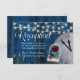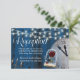 Cartes de réception de mariage de grange bleu marine avec guirlandes rustiques de conte de fée.