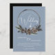 Dusty Blue and Black Christmas Wreath Faire-part de mariage - Une fête gothique moderne. Entrez dans le monde enchanteur d'un mariage de Noël d'esthétique sombre avec notre invitation noire et bleu poussiéreux. Parfait pour ceux qui recherchent une touche gothique et élégante dans une fête hivernale classique, cette invitation donne une ambiance intemporelle. Le design monochromatique dégage une ambiance moderne mais festive, idéale pour les couples qui apprécient le côté plus sombre de la période des fêtes. Partagez votre histoire d'amour unique avec des êtres chers à travers cette faire-part de mariage qui marie l'obscurité de l'hiver avec la luminosité de votre amour.