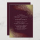 Invitation vos invités à une célébration céleste de l'amour avec notre "Starry Night Deep Crimson Faire-part de mariage". Ce design majestueux présente une toile de fond cramoisie profonde qui s'évanouit dans une galaxie de poussière d'étoile dorée, qui rappelle un ciel nocturne illuminé de constellations. L'aspersion d'étoiles descend, créant un effet dégradé qui saisit l'amour et le mystère d'une soirée enchantée. Une typographie élégante annonce votre union, flottant au milieu de l'exposition cosmique, promettant un événement aussi inoubliable que le cosmos. Cette invitation n'est pas seulement un appel à un jour spécial, c'est un voyage vers une nuit où votre amour est l'étoile la plus brillante du ciel.