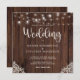Bois rustique et lampes à cordes Dentelles Carré de mariage Invitations avec un arrière - plan en bois rustique avec des cordes scintillantes de lumières et dentelle de style vintage dans les coins inférieurs. Le mot mariage est lancé dans une typographie élégante mais rustique, ce qui en fait le design parfait pour votre boho, votre pays ou votre mariage de ferme. Veuillez nous contacter à cedarandstring@gmail.com si vous avez besoin d'aide pour la conception ou les produits correspondants.