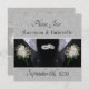 Deux fiancés sont représentés par deux smokings noirs avec des oeillets blancs sur les revers et sont associés à un motif paisley de couleur argentée clair des deux côtés avec un texte entièrement personnalisé pour rendre le mariage gay spécial.