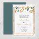 Invitation Mariage de feuillage cyan gris or blanc géométriqu