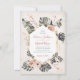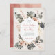 De beaux feuilles tropicaux verts, des fleurs en terre cuite et des lys crème sur un vieux arrière - plan en lin avec un cadre central avec un petit faux or. Parfait pour un mariage de chute ou de désert avec une nature tropicale, boho. Le dos est un arrière - plan d'aquarelle en terre cuite Besoin d'aide pour la mise en page, envoyez-moi simplement un email avec le lien vers tkatz@me.com Beaucoup d'articles correspondants sur celui!