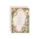 Un design mariage Art Nouveau romantique avec des fleurs de pêche et de crème, entrelacées de parchemins botaniques verts doux. Cette illustration élégante entoure une disposition de style vintage avec des courbes gracieuses et des détails ornés, parfait pour les couples à la recherche d'une esthétique mariage classique mais artistique inspirée de la nature et de la beauté antique.
