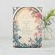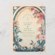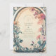 Un faire-part de mariage floral enchanteur, aux fleurs d'indigo teintées de rouille et douces, agrémenté d'un feuillage Art Nouveau qui s'écoule. Le design vintage de l'arc ovale et les tons terreux évoquent une atmosphère de jardin rêvée, idéale pour une cérémonie romantique en plein air ou un élégant mariage d'automne.