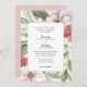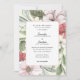 Ce faire-part de mariage est décoré d'un arrière - plan fleuri et verdoyant d'automne aux couleurs, rose vif, vert sauge et rose foncé. Le côté arrière est un bleu foncé rose. L'invitation est parfait pour un été ou un mariage de automne.