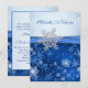 Faux de neige d'argent sur un arrière - plan de flocons de neige bleu décoré d'une image imprimée de Faire-part de mariage de ruban bleu