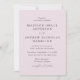 Cette élégante invitation de mariage présente les noms complets du couple et les détails du mariage en lettres noires frappantes, dressées contre un arrière - plan mauve lavande souple. Les accents de script de calligraphie moderne améliorent le design, ajoutant une touche de sophistication et de style. Parfait pour les mariages du printemps ou de l'été, cette invitation allie élégance intemporelle et touche contemporaine, créant une belle et mémorable introduction à votre célébration mariage.