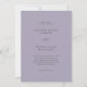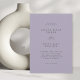 Cette faire-part de mariage simple et de bon goût a une esthétique élégante avec un design épuré et minimal. Montré ici en lavande violet avec du texte gris fusain foncé, ce design est disponible dans d'autres coloris populaires. C'est un choix merveilleux pour les mariages en toute saison dans n'importe quel lieu de l'année. La simplicité du design est accentuée par une typographie nette et l'absence de détails ornés. Un choix classique qui met en valeur les noms de mariée et de mariée en plus grand type avec un élément de calligraphie joignant les noms de couple avec des fioritures et des swashes présente un sentiment général de simplicité et de sophistication.