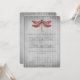 Invités Invitations à votre prochain mariage avec un Faire-part de mariage à libellules juives. Le design d'invitation comprend une libellule à bijoux vibrante contre un arrière - plan rayé vintage en détresse. Personnalisez avec les noms du marié et de la mariée ainsi que la date et l'emplacement du mariage. Papier à lettres mariage supplémentaire disponible avec cette conception aussi.