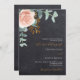 Arrière - plan de tableau de bord. Décoré d'or rose et de fleurs roses rousses, de fleurs roses et de feuilles d'eucalyptus vert aquarellés, de sprigs, de verdure et d'une fausse feuille d'or. Personnalisez et ajoutez vos noms et détails. Texte blanc et doré.