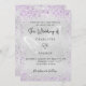 Une faire-part de mariage moderne, élégante et minimaliste. Arrière - plan métallique argenté Faux décoré de poussière de parties scintillant violet et un butterlfy comme filigrane. Personnalisez et ajoutez vos noms et les détails du mariage. Lettres de couleur noire.