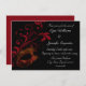 Simple mais élégant, floral rouge et or embelli mascarade à thème faire-part de mariage avec un masque et des fleurs vénitiennes rouge et doré. Personnalisez avec les détails de votre journée spéciale.