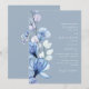 Cet élégant faire-part de mariage floral transparent bleu poussiéreux peut être personnalisé avec vos informations en typographie chic avec votre monogramme au verso. Conçu par Thisisnotme©