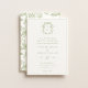 Sage Green Monogram Crest, faire-part de mariage. Cire monogramme d'art baroque d'inspiration vintage Regency-Era. Caractéristiques, une élégante typographie couleur sage style design mélange de script et de type gras. Arrière-motif de jardin de style Chinoiserie.