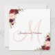 Carré design faire-part de mariage parfait pour ajouter votre propre dentelle avec d'élégants accents d'aquarelle rouge bordeaux, monogramme rose roux dans une police de script et police de script classique bordeaux pour le texte d'invitation. Customisez avec votre monogramme, vos noms et vos couleurs mariages. Ajoutez toutes vos informations mariages au verso de la carte en utilisant les invites de menu faciles à utiliser de Zazzle. Vient avec une enveloppe blanche vierge.