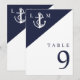 Ces numéros de table marine bleu et blanc minimaliste nautique, élégante de mariage peuvent être personnalisés avec vos informations dans la typographie moderne. Conçu par Thisisnotme©