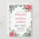 Le design présente un cadre floral poinsettia délicat en aquarelle à l'avant. Un faire-part de mariage parfait pour votre mariage d'hiver. Ajouter les détails du site Web monogramme et mariage à l'arrière.