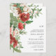 Ce magnifique faire-part de mariage de vacances moderne présente d'élégantes fleurs rouges d'aquarelle avec des baies sèches, des pinecones et de la verdure. L'arrière de la carte comprend la même illustration. Trouvez les articles correspondants dans la collection de Noël botanique rouge hiver de vacances.