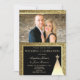 Invitation de mariage de Noël simple, moderne, élégante, stylée, avec paillettes noires et or et photo.