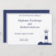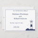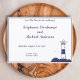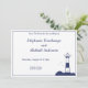 Élégant et simple Enregistrer le faire-part de mariage Date avec une illustration d'un phare en bleu marine pour un mariage marin et nautique ! Modifiez le texte et envoyez-le !