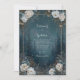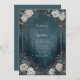 Invitation vos invités à une romance céleste sous un couvert d'étoiles avec cette invitation magique et moody forêt enchantée. Le design est une illustration à couper le souffle et peinte d'une forêt de pins profonde au crépuscule, avec un beau ciel étoilé à travers les arbres brumeux. Une bordure luxuriante et romantique de pivoines blanches antiques et de feuillage bleu poussiéreux, agrémentée de touches de bronze et d'une épaisse poussière d'or magique, encadre élégamment la scène. Les teintes turquoises et bleues de la forêt créent une atmosphère mystérieuse et profondément romantique, offrant un cadre magnifique pour vos détails d'événement dans un cadre doré sophistiqué et fin. Parfait pour une forêt enchantée, céleste ou mariage étoilé, ce design magique est également parfaitement adapté pour un gala formel, une boule d'hiver ou une célébration d'anniversaire sous les étoiles. Donnez le ton pour une nuit inoubliable d'élégance et d'enchantement.