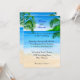Plage thème Mariage Invitations avec eaux tropicales bleues et palmiers. Grandes invitations de mariage pour les mariages de plage ou de destination. Plage d'art avec une plage de sable, palmiers, et eaux tropicales bleues arrière - plan pour votre invitation personnalisée. RSVP, Merci et autres produits mariages disponibles.