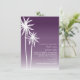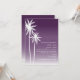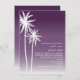 Une invitation à un mariage à la plage illustrant à gauche deux palmiers blancs sur un arrière - plan violet à l'ombre. Personnalisez le texte blanc.