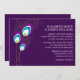 Une invitation élégante et classique présente une belle illustration vectorielle de plumes de paons sur un arrière - plan violet profond. Parfait pour les mariages, les douches nuptiales, les fêtes d'anniversaire, les sweets sixteens et plus encore !