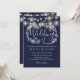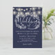 Navy Blue String Lights Script Wedding InvitationConçu par Thisisnotme Designs