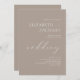 Cette invitation de mariage simple et élégante comporte le mot "mariage" dans un script blanc élégant. Personnalisez-le avec les noms du couple en lettres majuscules serif blanches (jointes par le mot "et" dans le script qui correspond à "mariage") et le texte restant en italique blanc minuscule sur un arrière - plan taupe neutre.