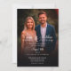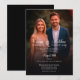 Le design présente un look moderne et minimaliste avec une palette de couleurs noir et blanc. Le point focal est votre photo avec un habillage noir élégant, La belle typographie script affiche les noms du couple et les informations mariages.
