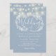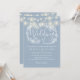 Un faire-part de mariage bleu poussiéreux avec de jolies lampes à cordes et une délicate guirlande florale rustique dessinée à la main, de feuillage de feuilles botaniques et de typographie stylisée. Personnalisez avec vos informations spéciales pour le jour de mariage. Conçu par Thisisnotme©