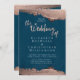 Une faire-part de mariage élégante et moderne pour les couples mariages d'aujourd'hui. Faux bronze métal design pour un look contemporain. Arrière - plan bleu avec texte blanc.