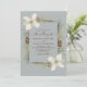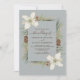 Cônes de pin d'hiver et fleurs blanches sur un gris clair avec élégant faire-part de mariage de script.
