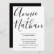 Faire-part de mariage de script élégant noir et blanc. Envoyez à vos amis et à votre famille ce Faire-part de mariage de script noir et blanc élégant. simple et élégant mariage chic invite. Le dos de la carte est noir. Customisez-le en modifiant les noms de la mariée et du marié et la date et l'emplacement du mariage. N'hésitez pas à me contacter pour toute personnalisation supplémentaire sur mypaperlove2021@gmail.com