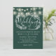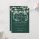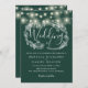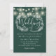 Un faire-part de mariage vert émeraude avec de jolies lampes à cordes et une délicate guirlande florale rustique dessinée à la main, feuillage de feuilles botaniques et typographie stylisée. Personnalisez avec vos informations spéciales pour le jour de mariage. Conçu par Thisisnotme©