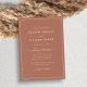 Faire-part de mariage Script en terre cuite. Faites de votre faire-part de mariage un moment inoubliable de votre journée spéciale grâce à ce design chic et élégant. Présentant un style simple et minimaliste avec une touche traditionnelle classique, cette invitation contemporaine en texte seulement présente un script de calligraphie à la main avec un cadre classique en terre cuite / orange brûlé. Trouvez des produits de coordination dans la Suite Simple Elegant Mariage Frontière en Terracotta.