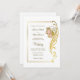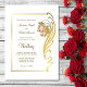 Un élégant faire-part de mariage en or avec cadre doré orné d'un ornement fleuri doré et rose. Le texte est facilement customisé pour que vous puissiez ajouter vos propres détails selon vos besoins.