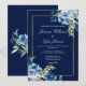 Des roses bleues et blanches élégantes ornent cette belle invitation de mariage floral de soirée. Le cadre chic en faux or est accentué de jolies fleurs d'aquarelle indigo et d'un charmant brin botanique jaune clair. Les noms des mariés sont écrits en écriture cursive blanche classique à l'intérieur de la bordure rectangulaire de cette invitation d'hiver moderne.
