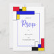 Un faire-part de mariage extravagant et alternatif pour un couple extravagant, inspiré de l'art de Piet Mondrian, dans les couleurs primaires rouge, jaune et bleu ainsi que les non couleurs noir et blanc, comme ils apparaissent dans ses oeuvres vers 1921. Montrez votre bon goût non seulement en choisissant un partenaire très spécial, mais aussi en art.