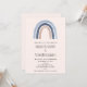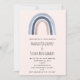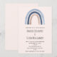 Une invitation de mariage avec un arc-en-ciel mignon et fantaisiste. Couleurs bleu et pêche.
