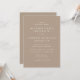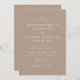 Donnez le ton de votre journée spéciale avec cette élégante faire-part de mariage taupe, présentant les noms complets et les détails mariages du couple en lettres blanches et croustillantes. Accentué de calligraphie moderne, ce design exhale sophistication et chaleur, ce qui en fait un choix parfait pour les mariages en toute saison. L'arrière - plan taupe douce offre une esthétique intemporelle et polyvalente, idéale pour les couples à la recherche d'un look élégant et classique.