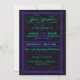 Cette invitation mariage damassé noire, violette et subtile, électrique, audacieuse et brillante, comprend des sections spéciales pour l'orientation et la réception à l'arrière, a une atmosphère vintage et démodée, avec un design de lettre à l'ancienne, avec des éléments de script élaborés, une bannière décorative, des étoiles et une mousse tourbillonnant. L'invitation soignée s'inspire à la fois du design vintage et d'affiches design. Le texte dit : "Vous êtes invité au mariage de [nom personnalisable] & [nom personnalisable] [date personnalisable] [heure personnalisable]. Rejoignez-nous pour une fête inoubliable". Personnalisez davantage l'invitation avec la cérémonie de mariage et les informations et l'adresse de réception, chacun dans sa propre boîte avec une bordure pointillée.