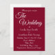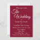 Style simple, faire-part de mariage qui dispose d'un arrière - plan de couleur rouge canneberge tendance avec les futurs noms de mariée et de mariée et la date de l'événement, l'heure, l'emplacement et le registre imprimé en blanc, stylisé. Personnalisez votre faire-part de mariage en remplaçant l'info par la vôtre. Sélectionnez le style et la quantité de papier d'invitation. Conçu pour coordonner avec notre collection de Mariages de style simple et rouge canneberge.
