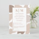 Présentant une conception contemporaine et élégante d'invitation de mariage dans des tons de café brun populaires. Cette invitation présente des formes géométriques dans l'arrière - plan et un rectangle bordé contenant les détails essentiels du mariage de la mariée et du marié. Un choix parfait pour les couples à la recherche d'une esthétique minimaliste et moderne pour leur journée spéciale.