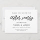 La fête continue ! Organisez votre mariage après la fête avec ces invitations modernes. Simple et moderne : une typographie minimaliste noir et blanc, idéale pour un couple branché. N'aimez-vous pas le noir et blanc ? Vous pouvez facilement customiser votre élément et modifier la couleur du texte.
