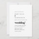 Cette carte de faire-part de mariage de typographie noire moderne est parfaite pour un mariage simple. Le design minimaliste noir et blanc présente une police rétro mais contemporaine, avec une atmosphère bohème rustique unique. Parfait pour toute saison. Gardez-le minimal, en l'état, ou ajoutez vos propres graphiques et illustrations.